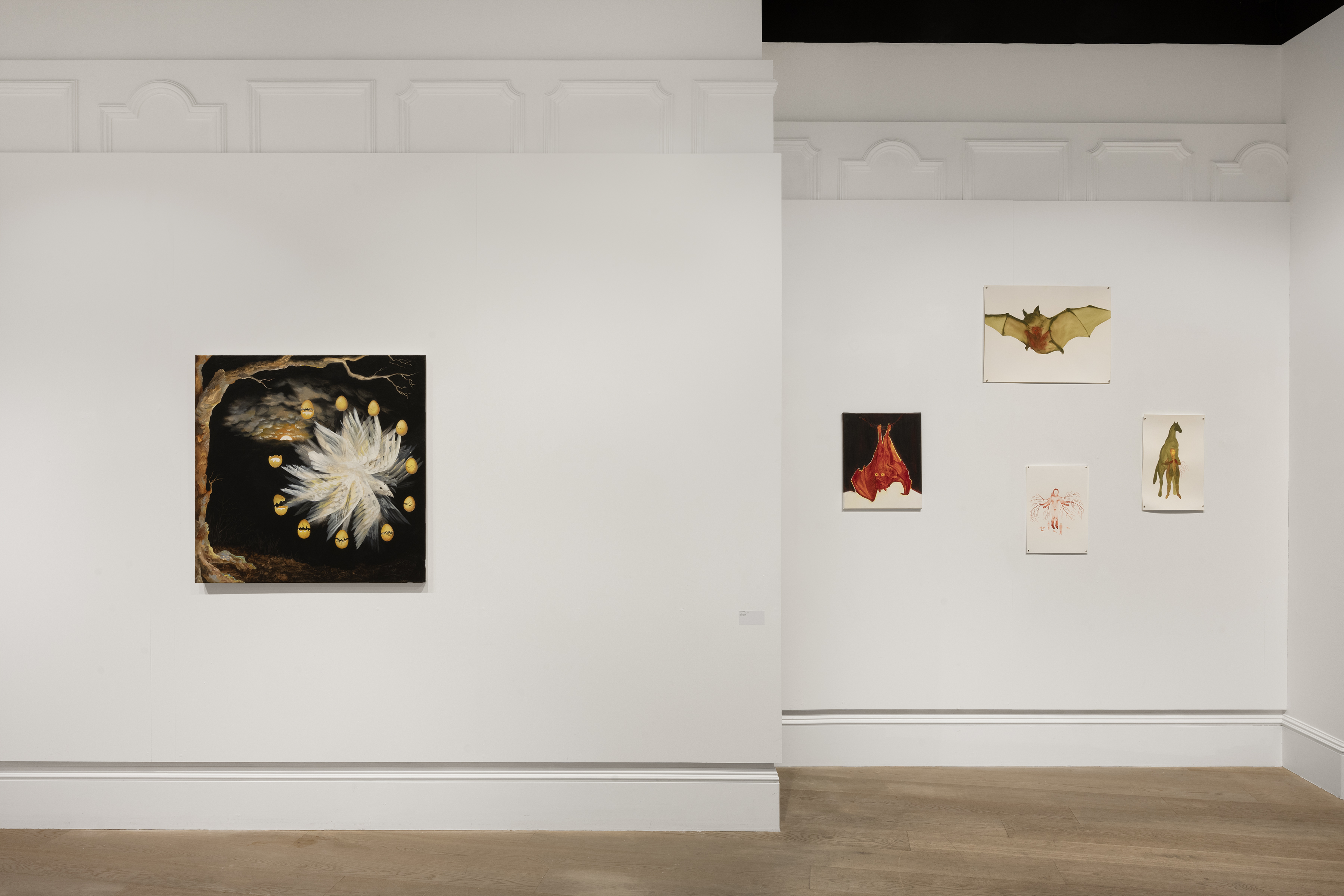 Kat Lyons (b. 1991, US) draws on her personal experience on a livestock farm, as well as distinct representations of animal lives, to probe human attitudes towards animals. By presenting her subjects across various planes of existence, her compositions aim to highlight non-human contributions to humankind, the challenges they face, and their rich emotional lives that bond all phenomena in the common experience of life on Earth. Recent solo exhibitions include Marquez Art Projects (2025) and Tank Museum, Shanghai (2025).