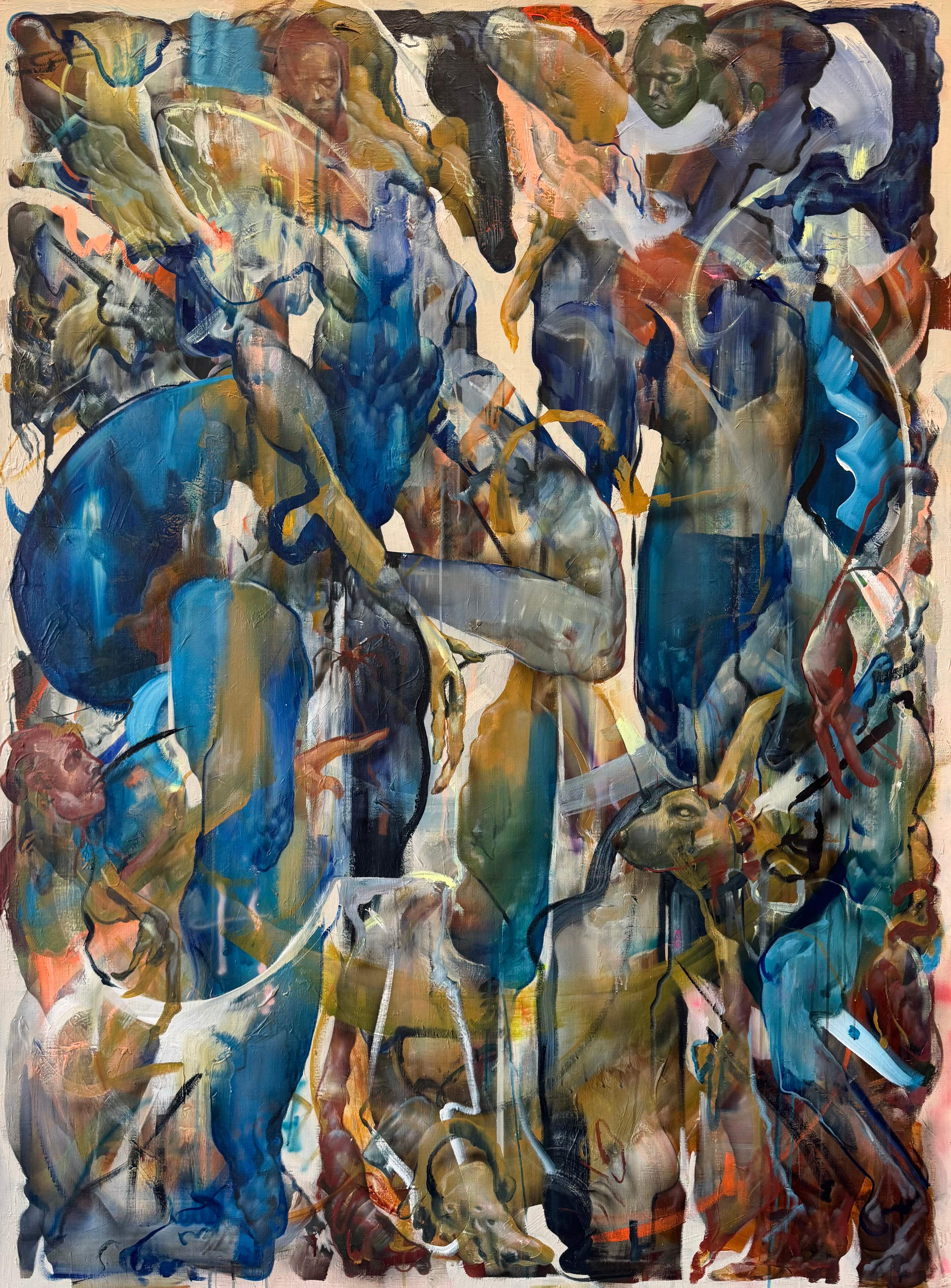 Sometimes it’s still too early and I’ll paint over everything again, because the work still needs more energy before it becomes defined. Even later in the process I might introduce new elements or restart parts of the painting entirely if something stops working.